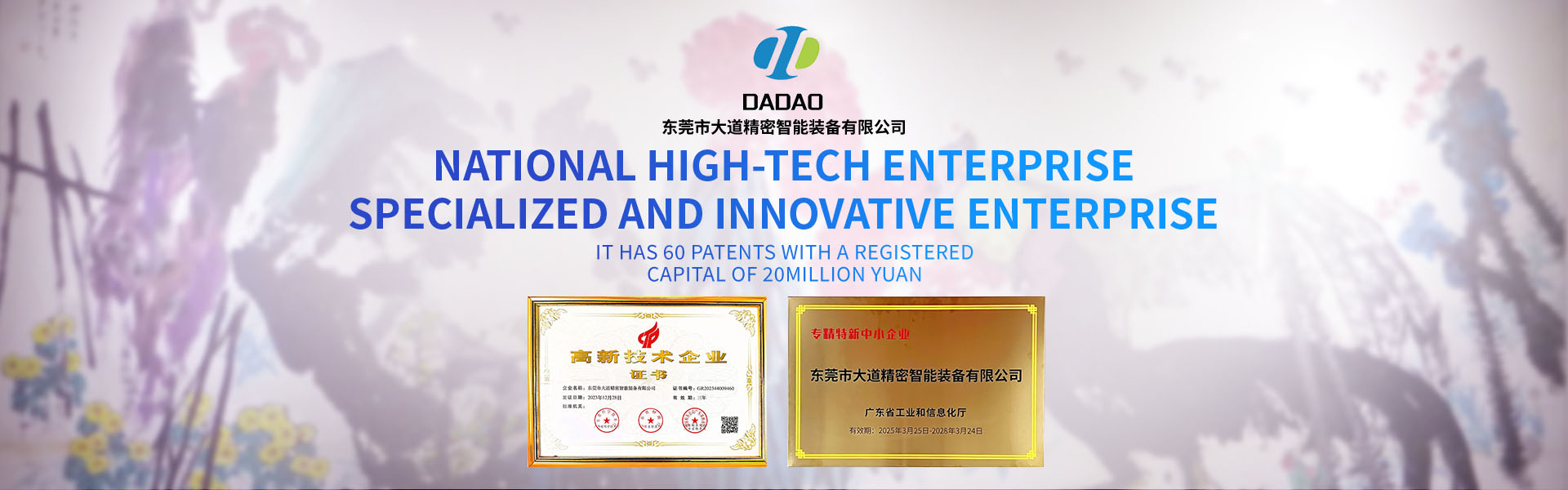大道精密成立于2019年,公司注冊(cè)資本1000萬(wàn)元,擁有辦公室、廠(chǎng)房等18,000多平方米。已通過(guò)ISO9001:2015國(guó)際質(zhì)量管理體系認(rèn)證,擁有國(guó)家各類(lèi)專(zhuān)利共計(jì)58項(xiàng),獲得“中國(guó)大道.商標(biāo)”和“一帶一路十周年 .國(guó)禮品牌”等榮譽(yù)稱(chēng)號(hào),屬于國(guó)家高新技術(shù)企業(yè),專(zhuān)精特新中小企業(yè)。2023年4月成立了“東莞市大道精密智能裝備有限公司關(guān)心下一代工作委員會(huì)”,是東莞市企石鎮(zhèn)工商聯(lián)副會(huì)長(zhǎng)單位、東莞市企石鎮(zhèn)文學(xué)藝術(shù)界聯(lián)合會(huì)副主席單位、東莞市環(huán)保包裝行業(yè)協(xié)會(huì)副會(huì)長(zhǎng)單位、東莞市數(shù)控裝備行業(yè)協(xié)會(huì)第二屆會(huì)長(zhǎng)單位、廣東省包裝技術(shù)協(xié)會(huì)常務(wù)理事單位、廣東省膠粘劑行業(yè)協(xié)會(huì)理事單位、國(guó)家標(biāo)準(zhǔn)《機(jī)械安全中安全防護(hù)授權(quán)系統(tǒng)的基本要求》起草單位。